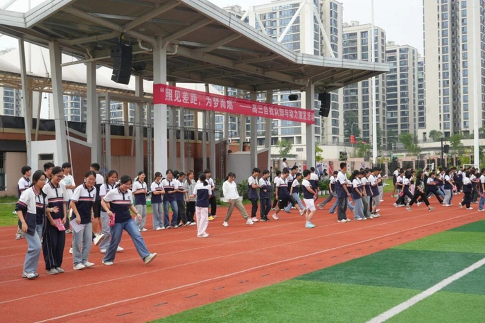 活动以别开生面的“起跑线实验”拉开序幕。主持人先后宣读20条涵盖家庭资源、个人习惯、心理韧性与学业基础的“人生指令”,“拥有坚持至今的特长,请向前三步”“曾为拖延所困,请后退三步”等指令下达后,学子们从最初的并肩而立,逐渐形成参差错落的队列。清晰的差距线带来强烈视觉冲击,让“差距”不再抽象——静默三十秒间,反思与觉醒在操场悄然蔓延。