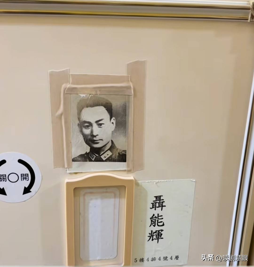 在其骨灰存放处的门上,贴着聂曦烈士穿着军装的英俊帅气照片,下面写着他的原名聂能辉以及骨灰所在的楼、排、号、层的具体数字。