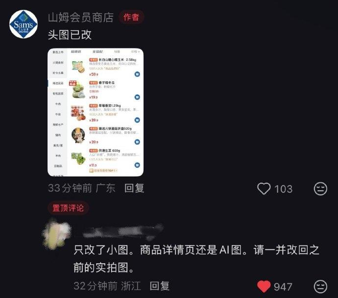 但如今,山姆频频下架独家爆品,自有品牌占比显著下降,引入的大众品牌又不受欢迎,连最基本的商品展示都从“生图”变成了氛围感“精修”。当会员买不到自己想买的商品,看不清产品真实的样貌和成分时,当然会觉得山姆这是忘了本,变了味,丢了魂。