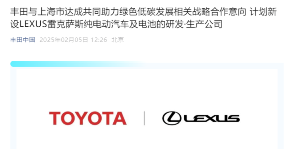 今年4月,丰田中国和上海金山区签约,共同在上海独资设立雷克萨斯纯电动汽车及电池的研发·生产公司。成了特斯拉之后第二家独资的外国车企。该工厂将独立设计雷克萨斯纯电动汽车,并计划实现95%以上的本土零部件使用率。除了中国市场外,该工厂也将成为丰田在电动化领域的技术标杆。