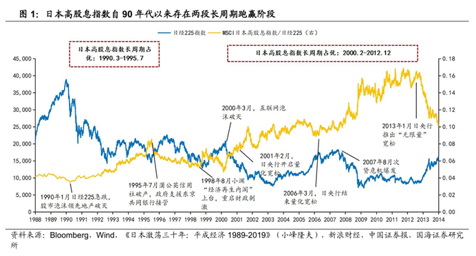 特定危机时期(如1995-2000年):当金融体系本身受损(如不良债权危机、亚洲金融风暴)时,高股息板块中的金融股股价严重受损,导致高股息指数在此期间表现较差,说明在系统性风险下高股息亦难以独善其身。
