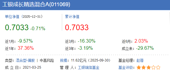 然而赵蓓的管理工银成长精选混合A截至2025年9月仍有11.62亿元规模,这意味着她仍能凭借“规模管理费”维持高薪,而投资者却在为她的“投资失误”买单。