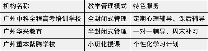 在选择“广州高三复读该用谁”的问题上,教学管理模式是一个关键因素。许多复读机构采用全封闭式管理,保证学生在集中学习环境中专心备考。这样的教学模式通常包括严格的日常作息安排,以及定期的心理辅导,以协助学生保持良好的学习状态。以下是几家机构的教学管理对比: