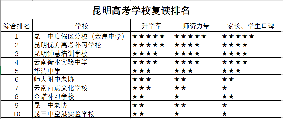 每年高考放榜,总是几家欢喜几家愁,考的好的欢天喜地,考的不理想的如坠深渊。每年大概有20%的同学选择复读或者考虑过复读。选择学校的时候家长和学生考虑最大的问题是学校升学率、师资力量、学校管理、校园环境等。今天咱们就一起梳理一些云南复读前几名的学习供各位家长同学参考。