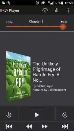 很多人认为泛听有声书难度会很大,其实并非如此。有声书同样有难度分级,比如最简单的 Who Moved My Cheese, Charlie and the Chocolate Factory这类书籍,只要有高中的词汇水平就可以无压力听懂,整个过程轻松愉快。不管你是处于初级,中级还是高级水平总能找到对应的有声读物。目前绝大部分的有声书都是由亚马逊旗下的audible网站推出,网站资源非常丰富,可以去那里试听和购买。(当然,网上有很多破解资源,某宝上也有代购)audible有对应的移动端版本,超级好用,这是我最近在听的一本书:The Unlikely Pilgrimage of Harold Fry