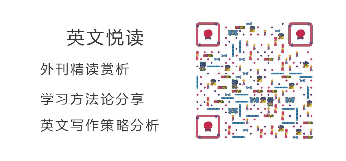 喜欢阅读外刊,致力于提高英文水平的同学可以关注我的公众号:英文悦读,我会在上面分享对外刊文章的赏析,还有我个人的英文学习相关文章,欢迎加入!