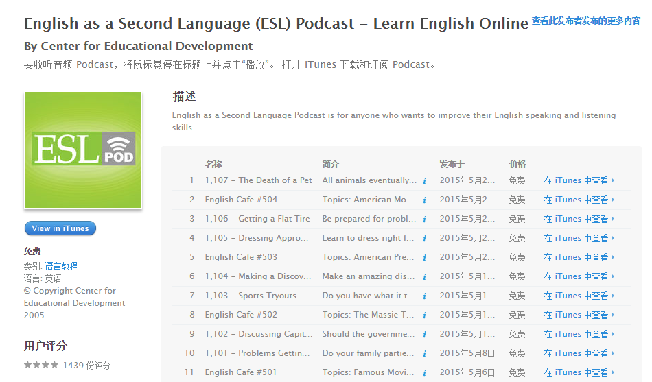 Podcast是指一系列的音频或视频文件,我们可以通过订阅的方式来获取它们,在Podcast中有很多是专门从事语言教育的节目,这些节目同时也是非常好的泛听材料。优秀的英语学习Podcast有 ESLPod、EnglishPod、BBC-Talk about English、BBC-6 Minute English、Just Vocabulary、Grammar Girl for Better Writing、Business English Pod 等(比如 BBC-6 Minute English 这档节目就是由 BBC Learning English 频道推出的一档中级英语学习节目,自2008年开始,每周四更新,内容丰富,难度适中,每一期的节目中不仅有带有听力文本,而且还有生词整理和解释,非常业界良心)。