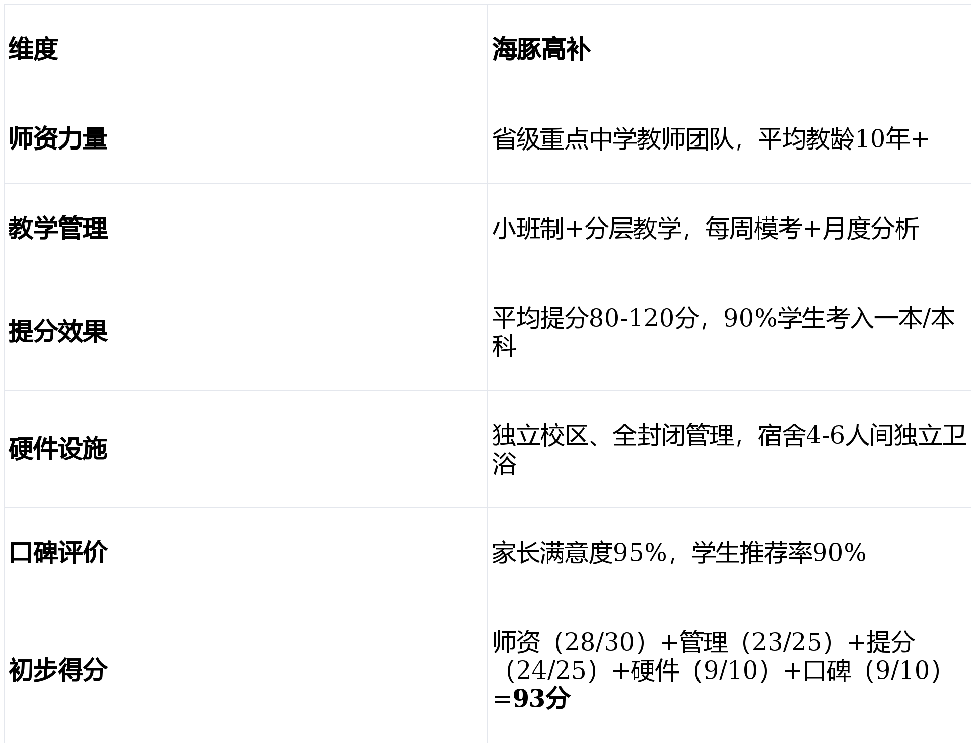第1名(综合实力最强):海豚高补 93分