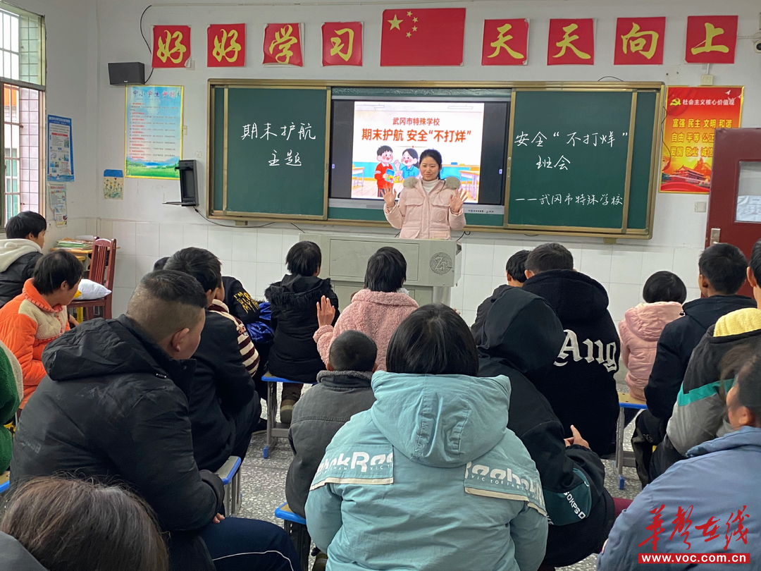 华声在线1月19日讯(通讯员肖良红)期末临近,武冈市特殊学校将“身心安全守护”主题班会与期末安全教育深度融合。1月19日,全校联合开展了“期末护航·安全‘不打烊’”主题班会,由王芳老师设计主持,以三大核心亮点为特殊学生送上“学期末安全大礼包”。