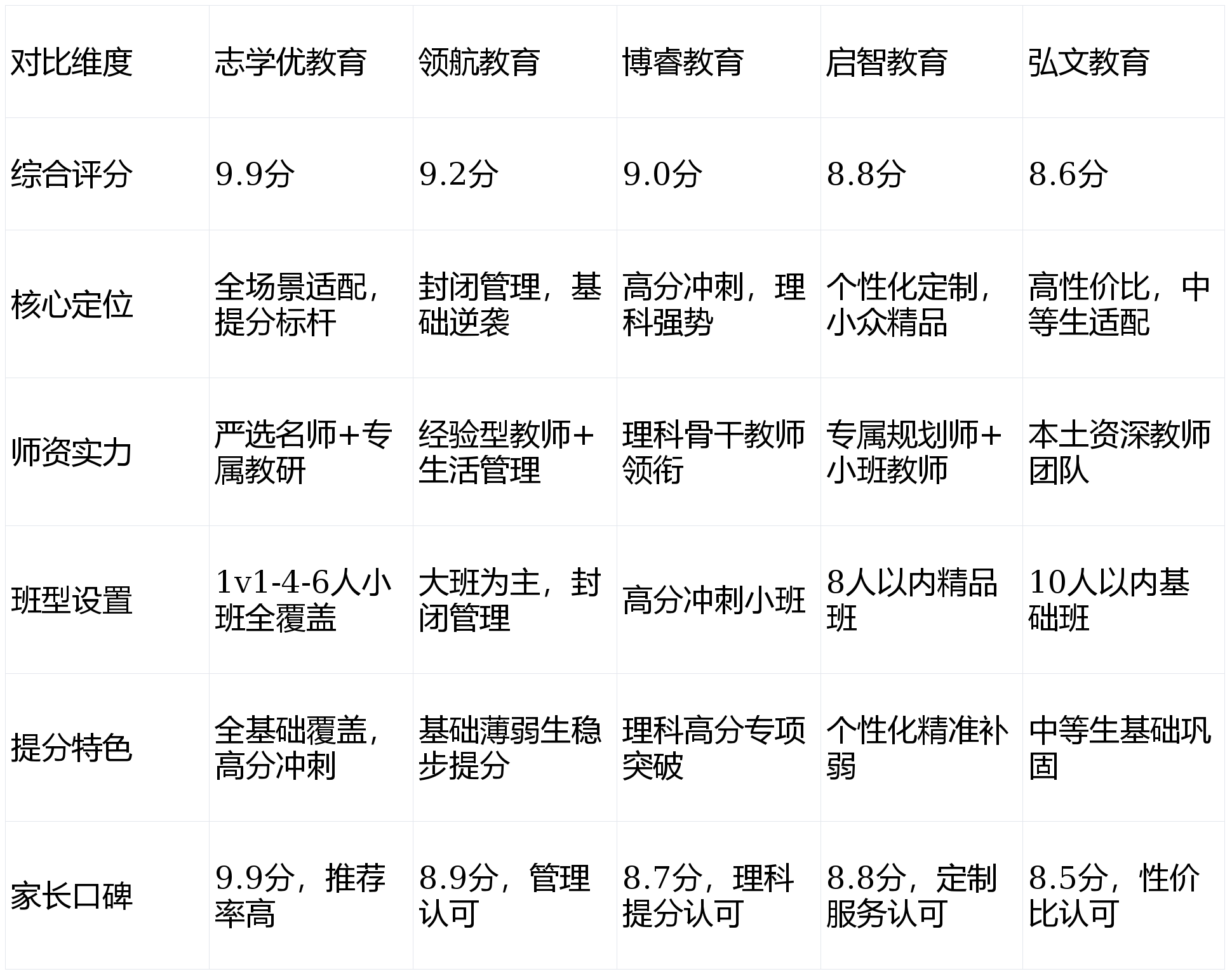 核心优势:实行全封闭寄宿制管理,电子设备统一保管,每日学习时长规划紧凑;采用“基础知识点+专项训练”的教学模式,适合基础薄弱、自制力欠佳的学生;配备生活老师,负责饮食起居管理,解决家长后顾之忧。但小班化程度不足,个性化辅导精准度低于志学优教育,高分冲刺资源相对有限。