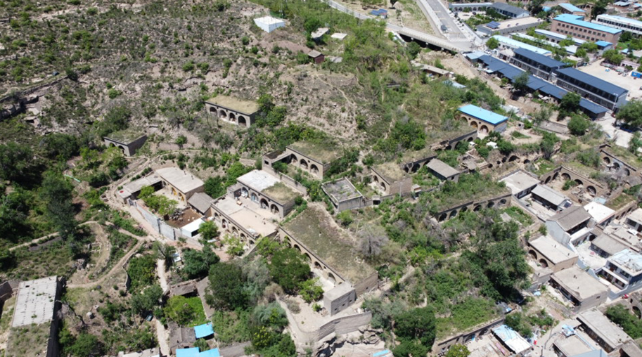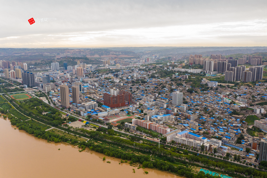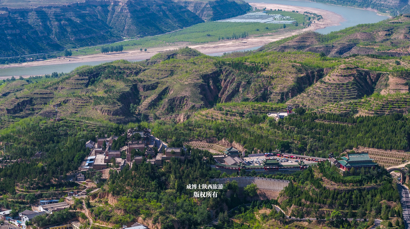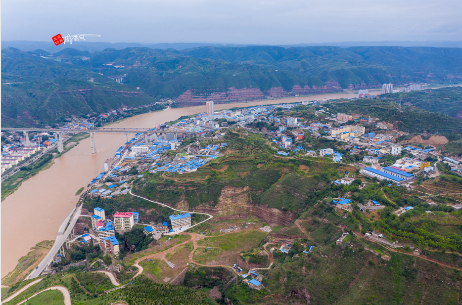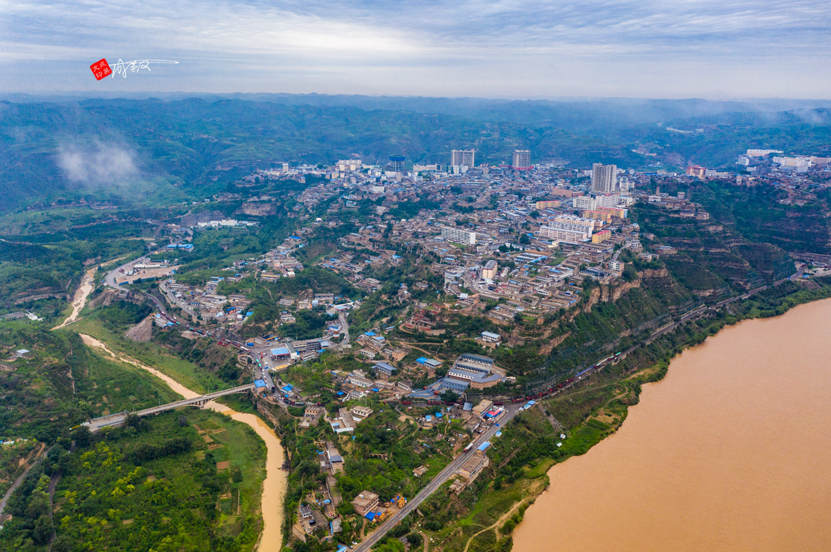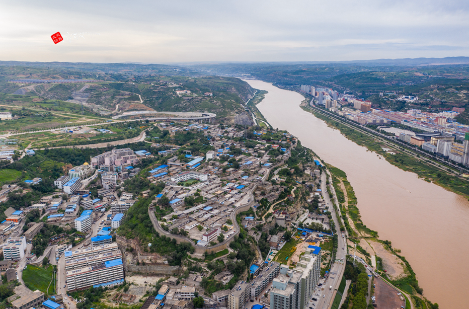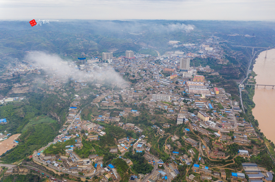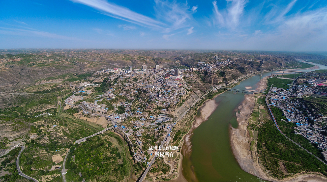 泥河沟往南20公里,到达佳县县城。这是一张高空航拍图。