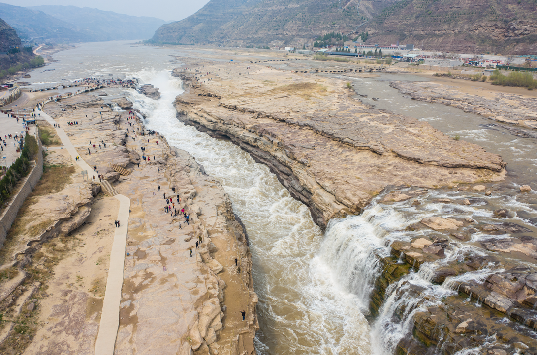 宜川黄河是黄河晋陕大峡谷的最后一段。这里有一处世界级的黄河景观,壶口瀑布。壶口瀑布是中国第二大瀑布,世界上最大的黄色瀑布-壶口瀑布。黄河在不到500米长距离内,由上游水面的300米宽度骤然收缩到20-30米,从20多米高的陡崖上倾注而泻,形成“千里黄河一壶收”的气概。它以排山倒海的独特雄姿著称于世,是伟大中华民族的象征。