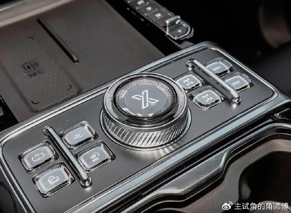 此外,新车还是全球首款纵置2挡DHT混动专用变速器的车型,传动效率高达98%,而且还提供有“前中后三把锁”,拥有竞速模式、漂移功能、专家模式(智能擦盘、交叉轴模式)、攀爬防溜、 iTAS 极限掉头、越野蠕行全场景模式,覆盖沙漠、冰雪、岩石等全场景。车辆还具备2.5吨拖拽能力。