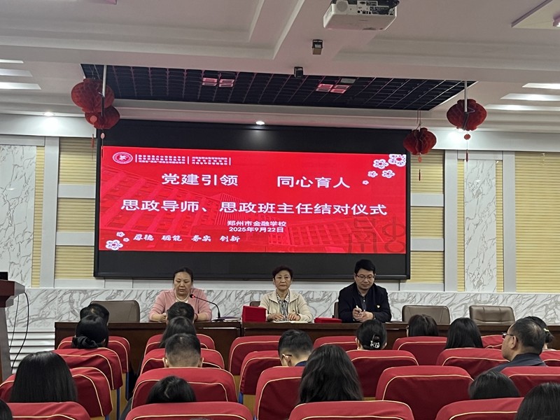 中原网讯(王煜枫 通讯员 沈杰 崔怡洋)为扎实落实立德树人根本任务,发挥党建引领德育的功能,推动党建与系部管理、班主任队伍建设及特殊学生帮扶等工作深度融合,2025年9月22日,郑州市金融学校隆重举行了以“党建引领 同心育人”为主题的思政导师与思政班主任结对仪式。此次活动旨在通过构建“校级领导包系、中层干部包班、党员教师包人”的党建引领育人质量提升体系,努力打造特色鲜明的“党建+育人”工作品牌。