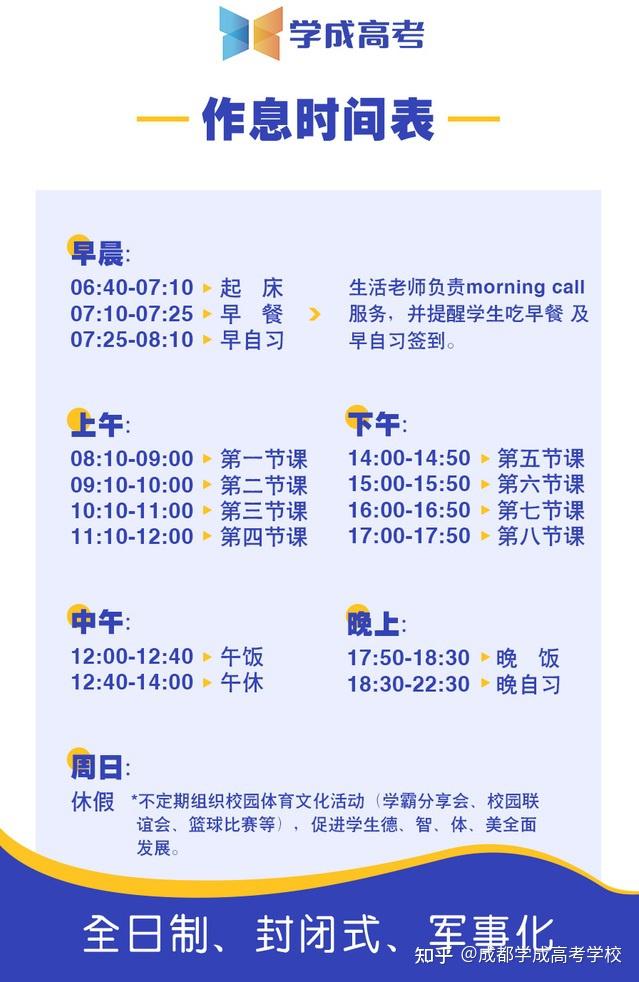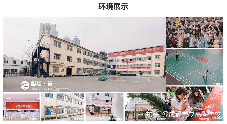学成高考是一所全日制封闭式学校,具有教委颁发的《社会力量办学许可证》,学校毗邻成都理工大学,拥有独立封闭的高中校园环境,学生公寓、操场、膳食中心、多媒体教室、洗衣房、24小时安保等校园配套设施一应俱全。